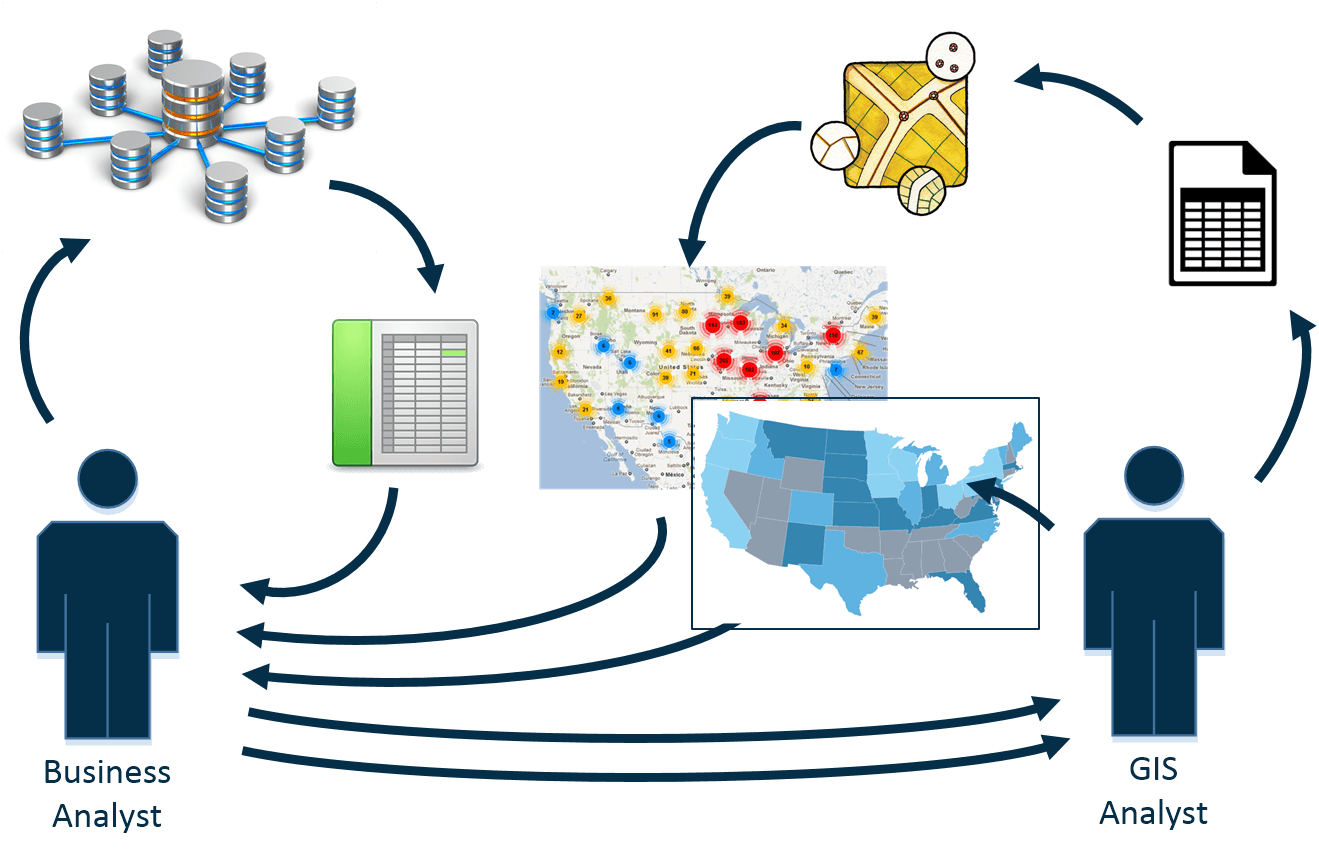 - The GIS analyst can’t use the data as provided, so they need to manually process the data they received from the business analyst.